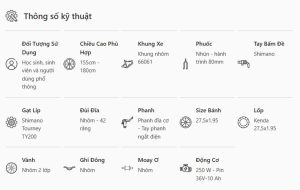- Sạc: 42V – 2A, thời gian sạc đầy 5–6 giờ